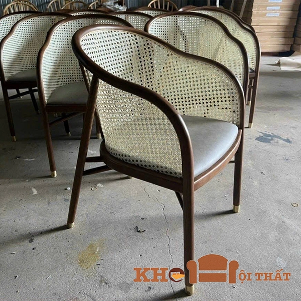 Ghế nhà hàng Womly gỗ tần bì chân bọc đồng GG-03 là mẫu ghế thường được sử dụng làm bàn ghế nội thất cho các nhà hàng, resort hay khách sạn cao cấp, đôi khi chúng ta cũng bắt gặp hình ảnh sản phẩm ở trong không gian nội thất sang trọng của một số quán cafe thượng lưu. Sản phẩm ghế cafe GHẾ WOMLY được sản xuất bằng vật liệu gỗ Ash tự nhiên nhập khẩu kết hợp mây đan tự nhiên theo kiểu truyền thống làng nghề tạo nên sản phẩm mang hơi hướm cổ điển mà không kém phần hiện đại và thanh lịch.