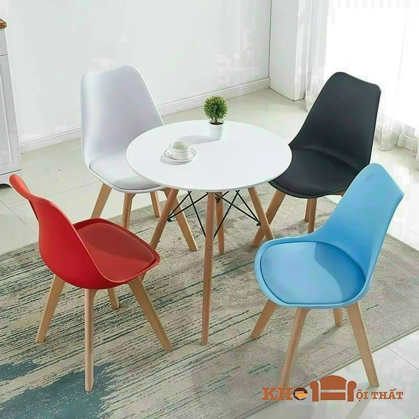 - Màu sắc: Bàn: Trắng, đen; Ghế: Trắng, đen, đỏ, xám, vàng, cam, xanh dương, xanh lá.