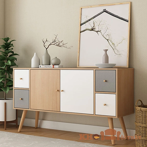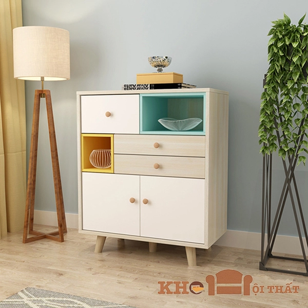 - Tủ kệ đa năng với ngăn kéo: Mẫu tủ kệ này kết hợp giữa ngăn kéo và kệ mở, tạo ra không gian lưu trữ đa chức năng. Ngăn kéo có thể được sử dụng để lưu trữ những vật dụng nhỏ như hóa đơn, chìa khóa, hoặc các vật phẩm cá nhân. Kệ mở có thể trưng bày các đồ trang trí hoặc sách, tạo điểm nhấn cho không gian. Mẫu tủ kệ này thích hợp cho phòng khách, phòng làm việc hoặc phòng ngủ.