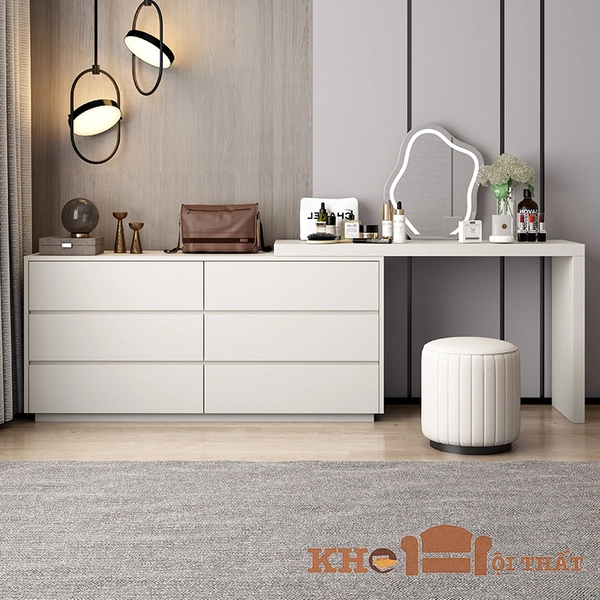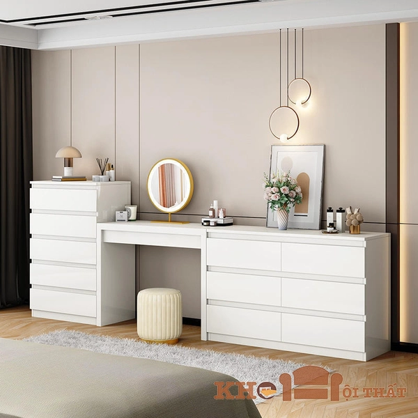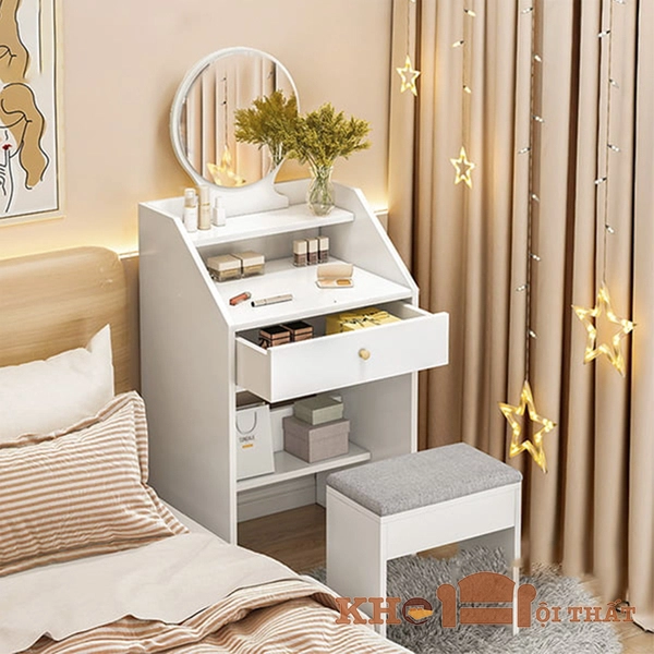 - Giá thành thấp hơn: Với mẫu bàn trang điểm gỗ công nghiệp, bạn có thể tiết kiệm được một khoản tiền lớn so với việc mua một chiếc bàn trang điểm bằng gỗ tự nhiên. Điều này rất hữu ích cho những người đang tìm kiếm một giải pháp tiết kiệm chi phí cho việc trang trí nội thất của mình.
