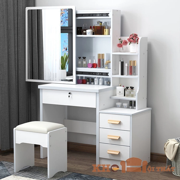 - Đa dạng về kiểu dáng: Mẫu bàn trang điểm gỗ công nghiệp có nhiều kiểu dáng và màu sắc khác nhau để bạn có thể lựa chọn. Vì vậy, bạn có thể dễ dàng tìm được một mẫu bàn trang điểm phù hợp với phong cách trang trí nội thất của mình.