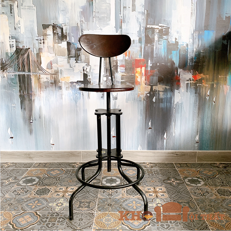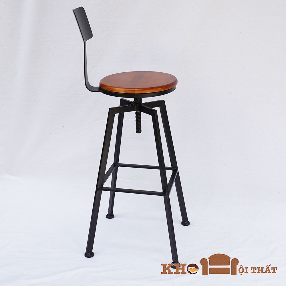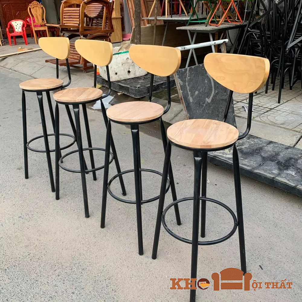 - Chất liệu: khung chân sắt, mặt ghế gỗ