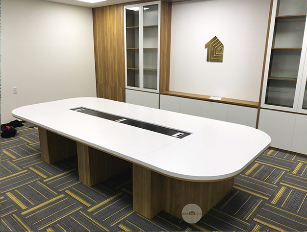 - Tối ưu hóa không gian làm việc: Với thiết kế hiện đại, các bàn họp cỡ lớn thường tích hợp khe đi dây điện, ổ cắm điện tiện lợi, hỗ trợ tối đa cho các cuộc họp sử dụng nhiều thiết bị điện tử.