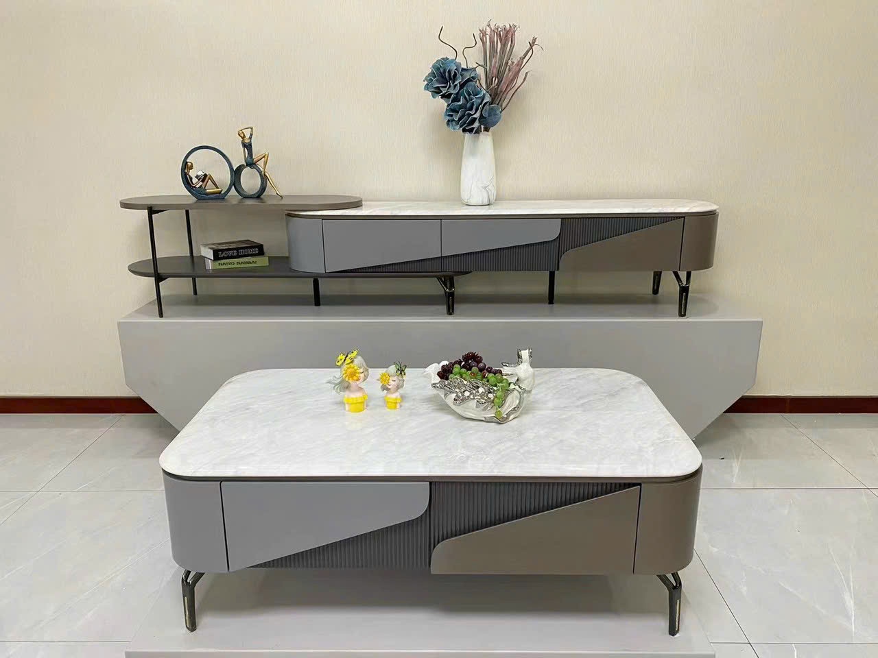 - Đa chức năng: Một số mẫu bàn còn tích hợp thêm kệ trưng bày, hộc mở hoặc mặt bàn có thể nâng lên, biến thành bàn làm việc tiện lợi.