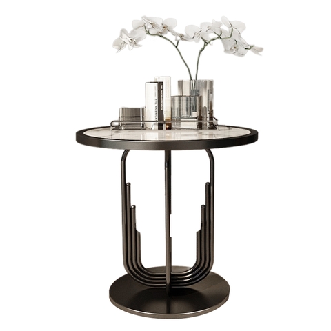 Bàn tab sofa tròn d50 chân sắt mặt đá B45