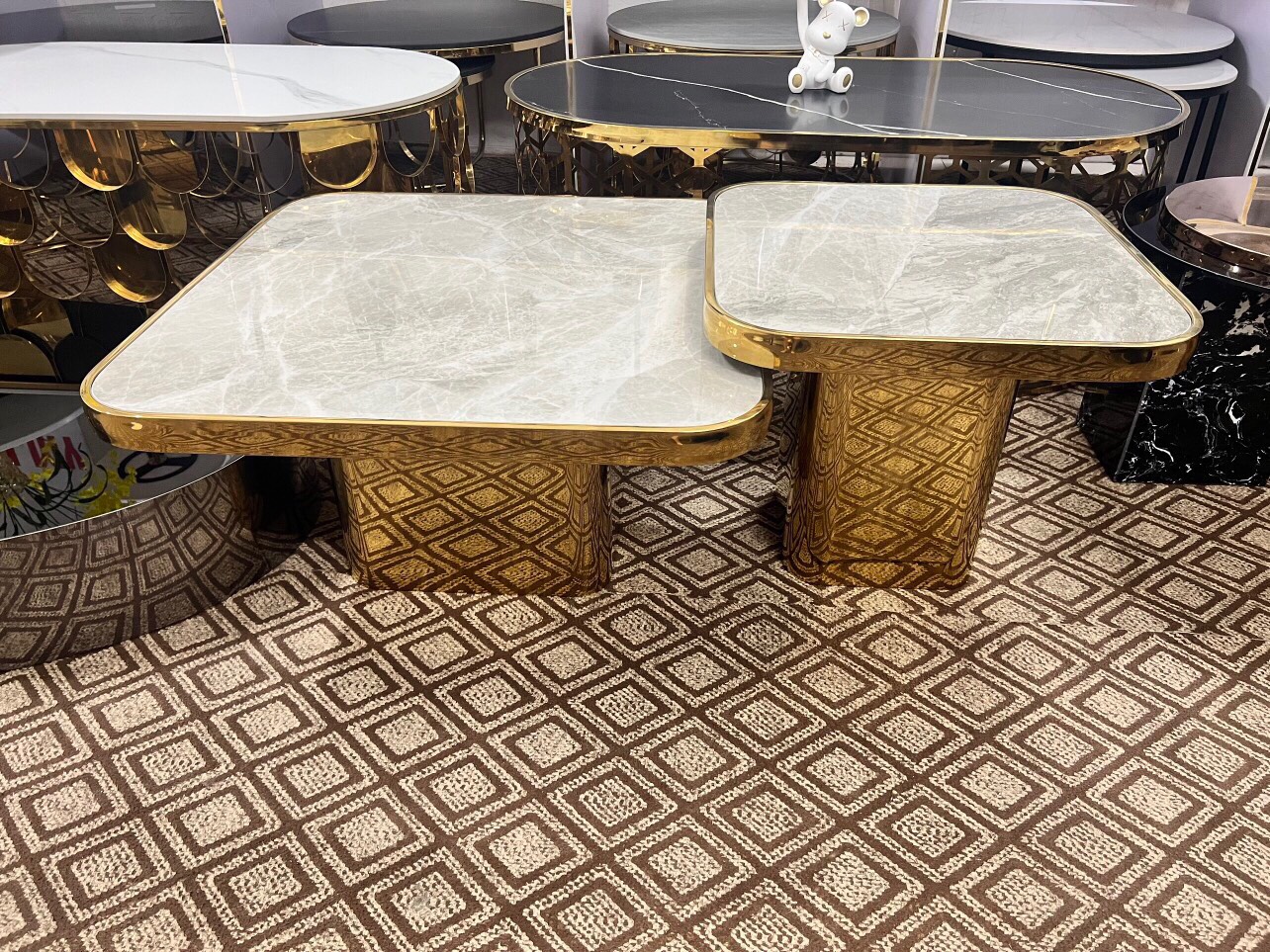 Bàn trà sofa inox mặt đá hiện đại BTI-07 với mặt bàn được làm từ đá ceramic là sản phẩm đồ nội thất cao cấp, được thiết kế và sản xuất với chất lượng hàng đầu. Sản phẩm này kết hợp giữa độ bền và đẹp của đá ceramic cùng với sự sang trọng và đẳng cấp của chân inox mạ vàng. Bàn trà này sẽ đem lại vẻ đẹp hiện đại, tinh tế cho không gian sống của bạn.