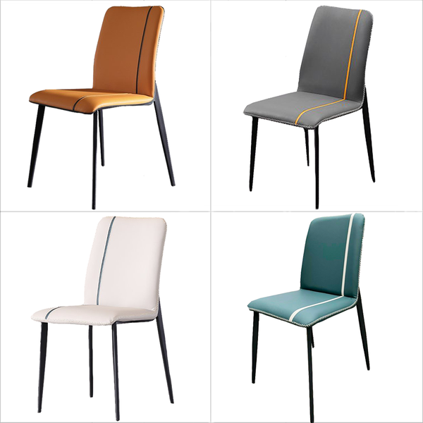 Ghế bọc da PU có 4 màu êm ái, lưng ghế hơi cong theo cơ thể tạo cảm giác thoải mái khi ngồi ăn. Chân bàn và chân ghế làm từ chất liệu thép sơn tĩnh điện chắc chắn, tỉ mỉ và vững chãi.