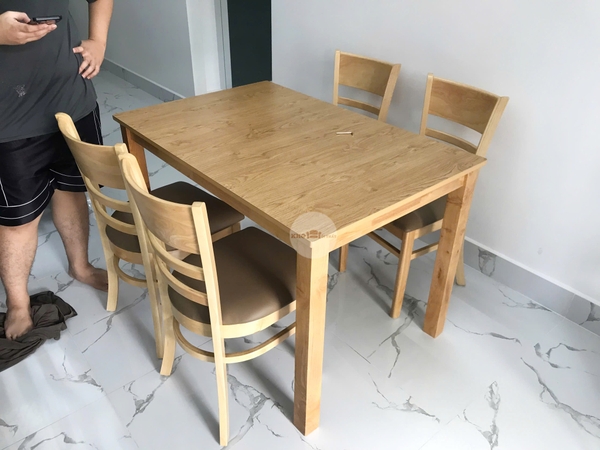 - Chân bàn được làm từ gỗ cao su bền đẹp, chắc chắn. Thiết kế các bộ phận được Kho Nội Thất Sài Gòn nối với nhau bằng đinh ốc rất chắc chắn. Có thể thoải mái di chuyển mà không sợ sản phẩm bị hư hỏng, lung lay. Tháo lắp dễ dàng để khách hàng có thể tự do vận chuyển, di dời mà không làm xước nền nhà.Thiết kế bộ bàn ăn cabin 4 ghế được đánh giá cao về tính thẩm mỹ lẫn khoa học.