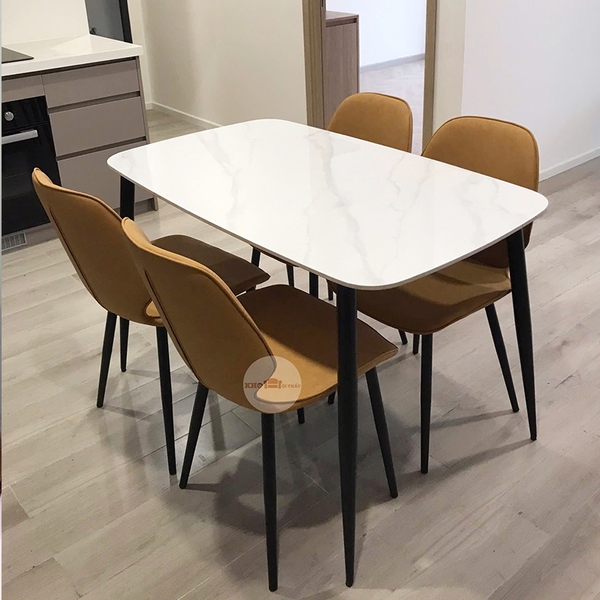 Bộ bàn ăn mặt đá với 4 ghế bọc da PU giá rẻ phù hợp với những căn phòng diện tích vừa và nhỏ. Không chỉ được đặt tại phòng bếp, bộ bàn ăn còn được sử dụng với nhiều mục đích khác nhau.