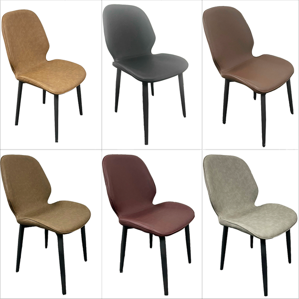 Ghế nệm bọc da PU êm ái, lưng ghế hơi cong theo cơ thể tạo cảm giác thoải mái khi ngồi ăn. Chân bàn và chân ghế làm từ chất liệu thép sơn tĩnh điện chắc chắn, với các đường nét bóng mịn, tỉ mỉ và vững chãi.