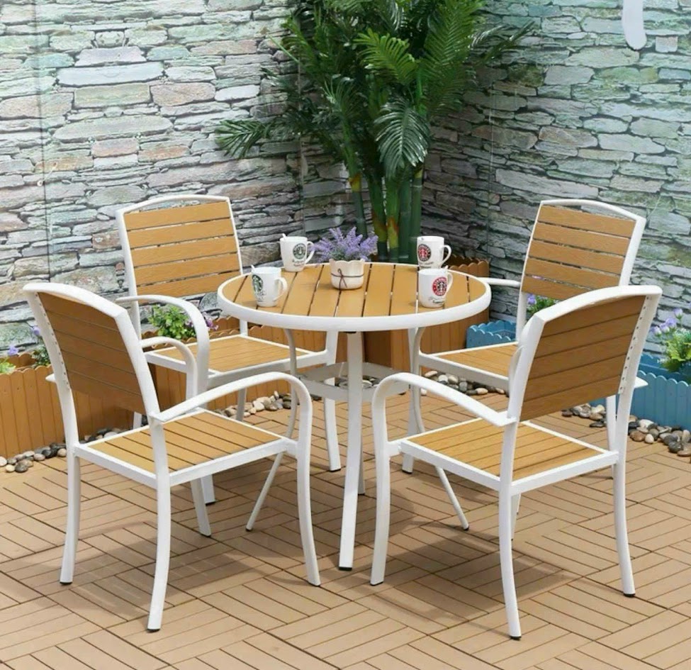 Bộ bàn cafe sân vườn BSV-05 được thiết kế tinh tế với kích thước 80x80x73cm, đủ rộng rãi cho các buổi họp mặt gia đình hoặc bạn bè. Bộ sản phẩm bao gồm 4 ghế, phù hợp cho không gian sân vườn, ban công hoặc quán cafe ngoài trời.