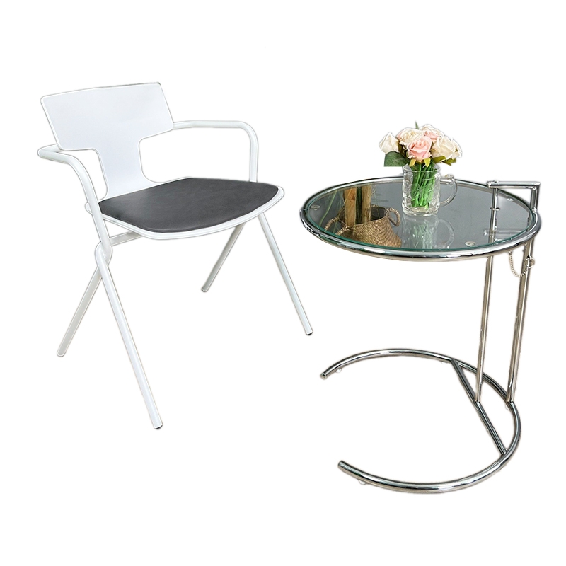 Bộ bàn ghế cafe cho homestay sang trọng BBC-40 với thiết kế bàn trong suốt khung sắt mạ crom với kích thước vừa phải, kiểu dáng hiện đại, ghế màu trắng kết họp nệm xám sẽ đáp ứng được tất cả các nhu cầu của người sử dụng như làm bàn ghế quán cafe trà sữa, bàn ghế cafe chill tại gia, bàn ghế tiếp khách cho cửa hàng, showroom…