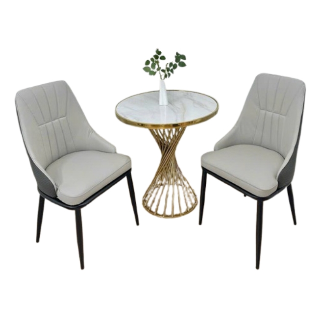 Bộ bàn tiếp khách chân mạ vàng và 2 ghế Misy hiện đại BBC-33 gồm 1 bàn tròn và 2 ghế lưng nệm bọc da PU cao cấp với màu sắc trẻ trung hiện đại giúp không gian bài trí thêm sang trọng và đẳng cấp. Với thiết kế sang trọng, hiện đại, bộ bàn ghế đã gây được sự chú ý của đa số khách hàng có nhu cầu mua đồ nội thất cho văn phòng, showroom, cửa hàng, spa, thẩm mỹ viện…