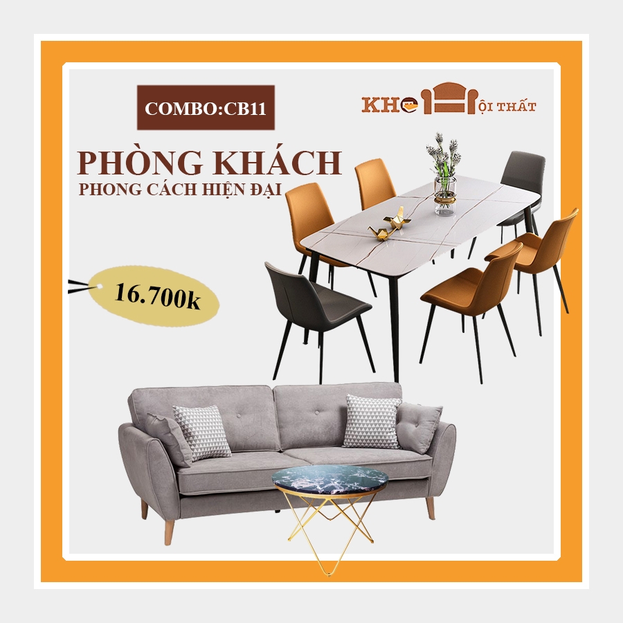 Combo phòng khách CB-11 Thiết kế đồng bộ và cân đối từ kiểu dáng tới màu sắc của từng bộ combo theo màu gỗ, màu đơn sắc, và sự kết hợp sắt - gỗ - đá. Nó phù hợp với phần lớn không gian chung cư với diện tích tầm 15m2 – 20m2. Với phong cách hiện đại tạo sự ăn khớp của nội thất với màu sơn tường cũng như các phụ kiện trang trí trong không gian sống của bạn. Vì vậy mà khách hàng chọn mua cũng không bao giờ phải lo lắng tới việc sắm combo này về nó sẽ kệch cỡm với toàn bộ bố cục căn phòng.