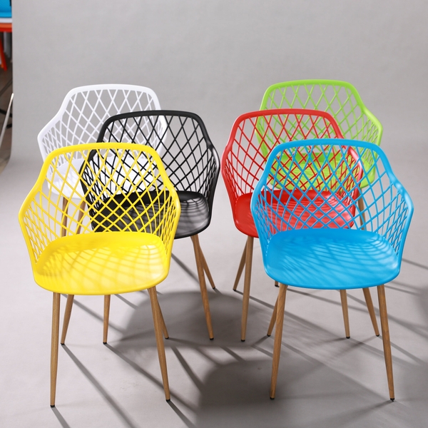 - Vật liệu: Thân ghế được làm từ nhựa PP cao cấp, đảm bảo độ bền và khả năng chịu lực tốt. Chân ghế được làm từ sắt sơn tĩnh điện giả gỗ, tạo nên vẻ đẹp sang trọng và tinh tế.