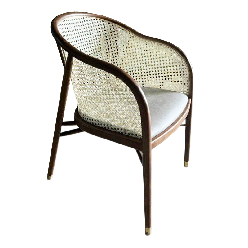 Ghế Cavallo gỗ tần bì cho nhà hàng GG-01 với thiết kế hiện đại, đơn giản, tinh tế với phần tay vịn được thiết kế liền với lưng tựa mang dáng vẻ cứng cáp và thoải mái, phần lưng tựa được đan mây tự nhiên phủ kín toàn bộ lưng ghế và tay vịn. chân ghế bọc đồng tạo nên điểm nhấn sang trọng và đẳng cấp.