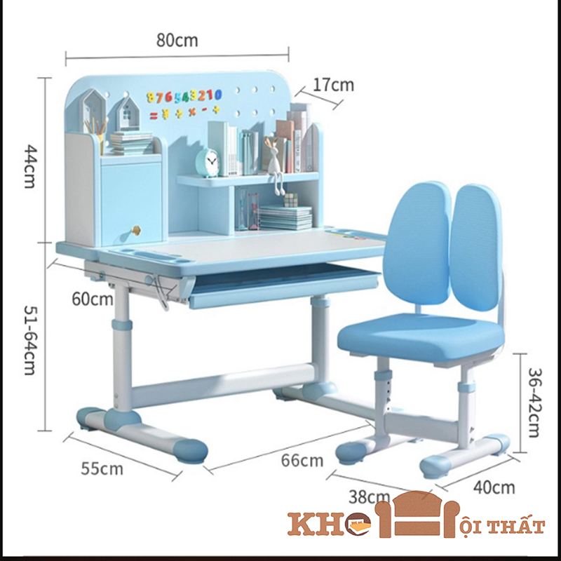 Cả bàn và ghế đều có thể điều chỉnh chiều cao, phù hợp với từng độ tuổi và sự phát triển của trẻ. Giúp trẻ có thể học tập thuận lợi mà vẫn đảm bảo sức khỏe và hình thể. Phòng tránh tốt các bệnh về mắt, cong vẹo cột sống, đau mỏi cổ vai gáy do ngồi học sai tư thế.