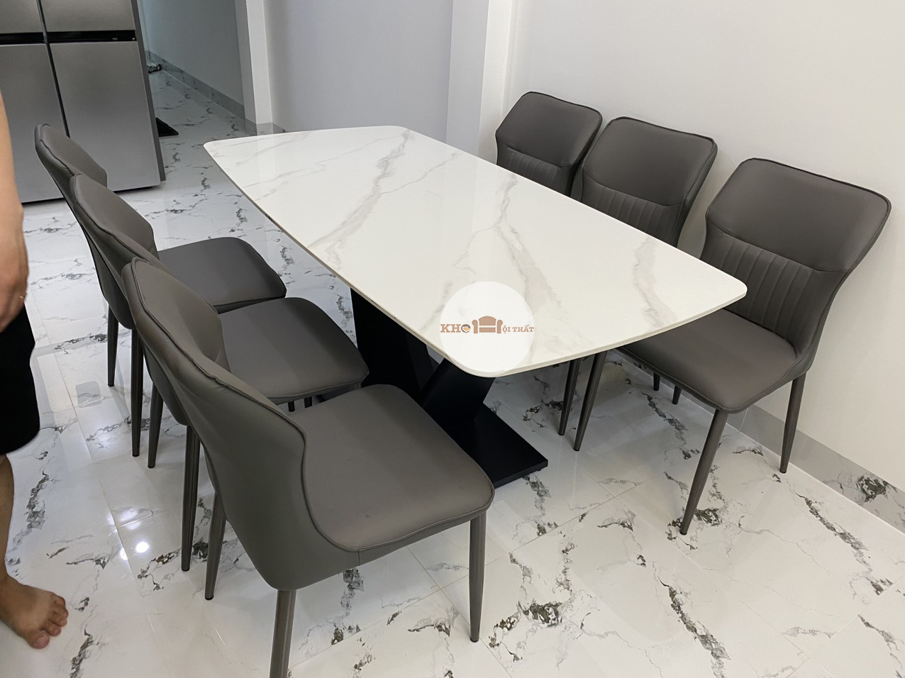 Bộ bàn ăn chân chữ V và 6 ghế Kelly BBA-104