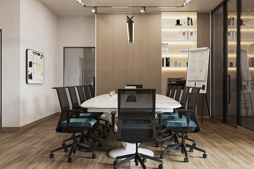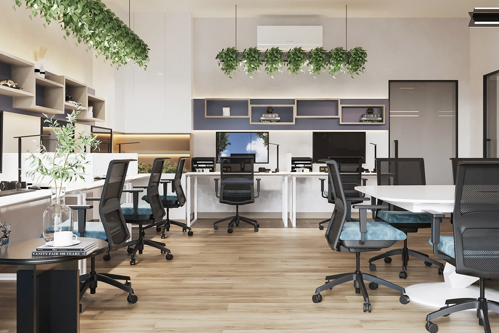 Bố trí nội thất sao cho phù hợp với không gian và nhu cầu làm việc của mỗi người. Điều này bao gồm việc chọn vị trí cho bàn làm việc, ghế, tủ đựng hồ sơ, và các thiết bị khác.