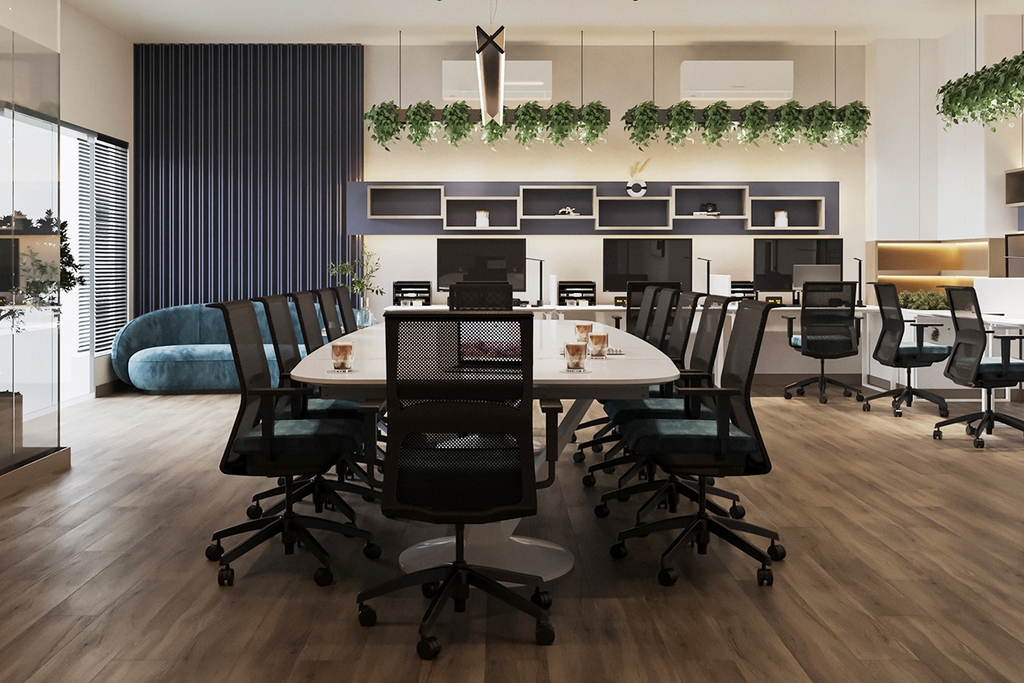 Thiết kế nội thất văn phòng làm việc 10 người đòi hỏi sự tinh tế và hiểu biết sâu sắc về không gian làm việc. Mục tiêu chính là tạo ra một không gian làm việc thoải mái, thân thiện và hiệu quả, giúp tăng cường sự tập trung, sáng tạo và năng suất làm việc.